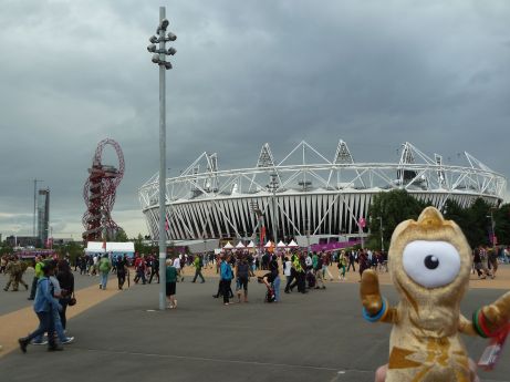 This is the stadium in Olympic Park, alongside a gold, limited edition Wenlock mascot. Wenlock is named after Much Wenlock, a town in England near to where I live, and the ‘home of the modern Olympics’. It is not because Much Wenlock residents have only one eye.