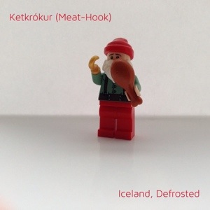 Ketkrókur (Meat-Hook) This Yule lad, the twelfth, uses a metal hook to grab meat, especially lamb hanging to be smoked. He then eats the meat, causing him to grow big and strong. Less and less meat is being hung these days, so he could use the hook to open plastic packets I suppose. Vegetarianism doesn’t mean anything to this lad. Ketkrókur arrives on December 23 and leaves on January 5.