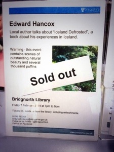 Finally, yesterday I gave two author talks at two local libraries. I was invited to do so by Shropshire Libraries, and I was delighted to oblige. The events were to celebrate National Library Day, and having been a lifelong Library user, coupled with the Icelandic obsession for all things bookish, it seemed to make sense. I was shocked to find that both events had sold out; I’ve never sold out anything before, and probably never will again. People were even turned away at the first event!