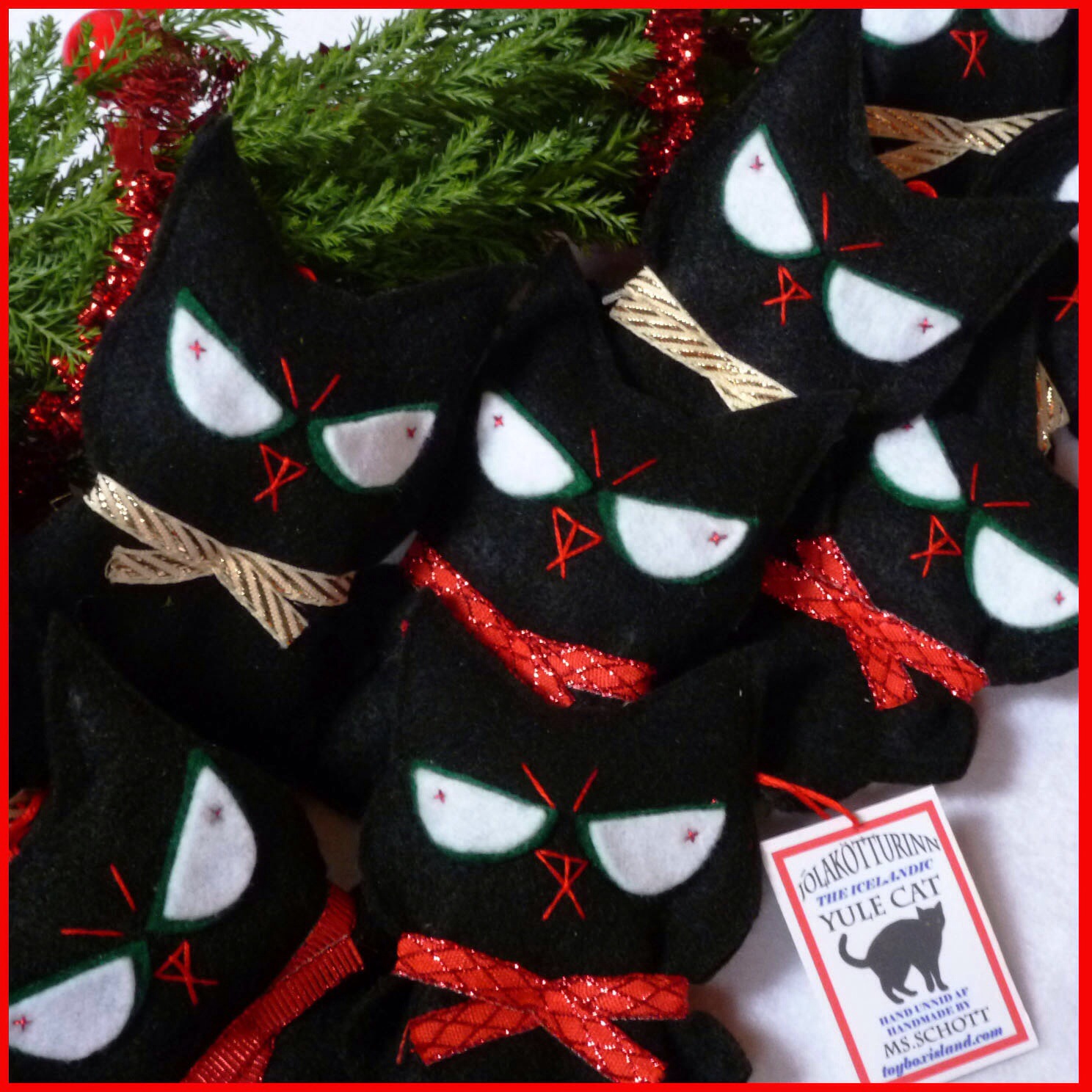 I stumbled across these wonderful Yule cat decorations in Reykjavik, made by Huseina Schott, an artist originally from Guelph, ON. Canada.