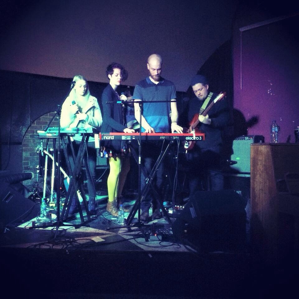 In possibly one of the worst venues I’ve ever been too—a dingy recess into industrial brick, with sticky floors, a dirty, tiny stage and a grimy feel to every surface—I find Rökkurró. This is a far cry from their usual environs of bright, twinkling lights of the ultra modern Harpa, or the class of Iðnó. I don’t ever recall wrinkling my nose at the smell of stale urine in Harpa, come to think of it.